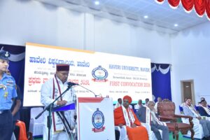 ಹಾವೇರಿ ನಗರದ ಜಿ.ಎಚ್.ಕಾಲೇಜು ಸಭಾಂಗಣದಲ್ಲಿ ಸೋಮವಾರ ಹಾವೇರಿ ವಿಶ್ವವಿದ್ಯಾಲಯದ ಪ್ರಥಮ ಘಟಿಕೋತ್ಸವ ಕಾರ್ಯಕ್ರಮದ ಅಧ್ಯಕ್ಷತೆ ವಹಿಸಿದ್ದ ಅವರು, ಗೌರವ ಡಾಕ್ಟರೇಟ್ ಹಾಗೂ ಪದವಿ ಹಾಗೂ ಸ್ನಾತಕೋತ್ತರ ವಿದ್ಯಾರ್ಥಿಗಳಿಗೆ ಪದಕ ಪ್ರದಾನಮಾಡಿ ಅವರು ಮಾತನಾಡಿದರು.