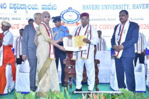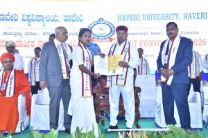 ಪದಕ ಪ್ರದಾನ : ಹಾವೇರಿ ವಿವಿಯ ವಿವಿಧ ಅಧ್ಯಯನ ವಿಭಾಗಗಳಲ್ಲಿ ರ್ಯಾಂಕ್ ಪಡೆದ ವಿದ್ಯಾರ್ಥಿಗಳಾದ ಓವರ್ ಆಲ್ ಟಾಪರ್ ಎಂ.ಎ. ಸಮಾಜಶಾಸ್ತ್ರ ವಿಭಾಗದ ನೇತ್ರಾ ಹರಿಜನ, ಎಂ.ಎ. ಅರ್ಥಶಾಸ್ತ್ರ ವಿಭಾಗದಲ್ಲಿ ಉಸ್ಮಾನಸಾಬ್ ಮುಲ್ಲಾ, ಎಂ.ಎ. ಇಂಗ್ಲಿ? ವಿಭಾಗದಲ್ಲಿ ಕಾವ್ಯಾ ಪ್ರಸಾದಿಮಠ, ಕನ್ನಡ ವಿಭಾಗದಲ್ಲಿ ಪ್ರಿಯಾಂಕಾ ಈಳಿಗೇರ, ವಾಣಿಜ್ಯ ಶಾಸ್ತ್ರದಲ್ಲಿ ಐಶ್ವರ್ಯ ಮುದಿಗೌಡ್ರ, ಸಮಾಜ ಕಾರ್ಯ ವಿಭಾಗದಲ್ಲಿ ಧನಲಕ್ಷ್ಮೀ ಪಾಟೀಲ, ಬಿ.ಎ. ಶಿಕ್ಷಣ ಶಾಸ್ತ್ರದಲ್ಲಿ ನಾಗಲಕ್ಷ್ಮೀ ಬೇವಿನಮರದ ಅವರುಗಳಿಗೆ ಬಂಗಾರದ ಪದಕ ಪ್ರದಾನ ಮಾಡಲಾಯಿತು.